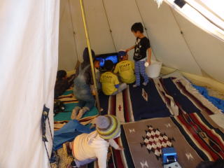 下の方にとんがり屋根の見えるテントはキッズスペースです。中を見るとちゃんと